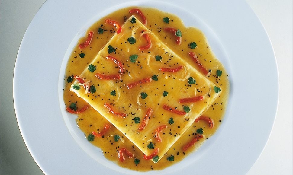 Lever les filets et éliminer la peau, puis parer, rincer et éponger soigneusement les filets. Les détailler en lanières de 5 mm d’épaisseur.