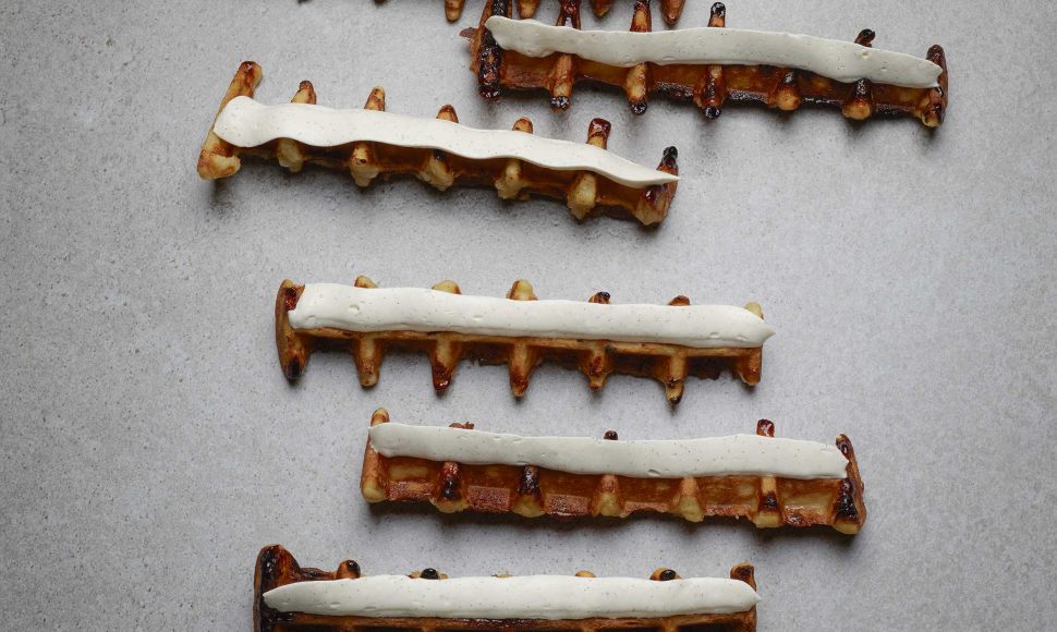Des gaufres que le chef détaille en barres, à déguster du bout des doigts.