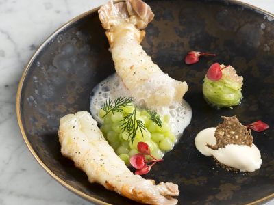 L’idée de cette recette, selon Stéphanie Le Quellec, est de proposer un plat tout en fraîcheur et en simplicité. Décliné autour de trois saveurs principales : la langoustine, le concombre et le sarrasin. Les deux dernières mettant en valeur les notes délicates et élégantes de la langoustine, dans ce plat printanier. L’originalité vient des deux textures et températures du concombre, cru et cuit. Et la cuisson à la nacre des langoustines en fait toute sa finesse.