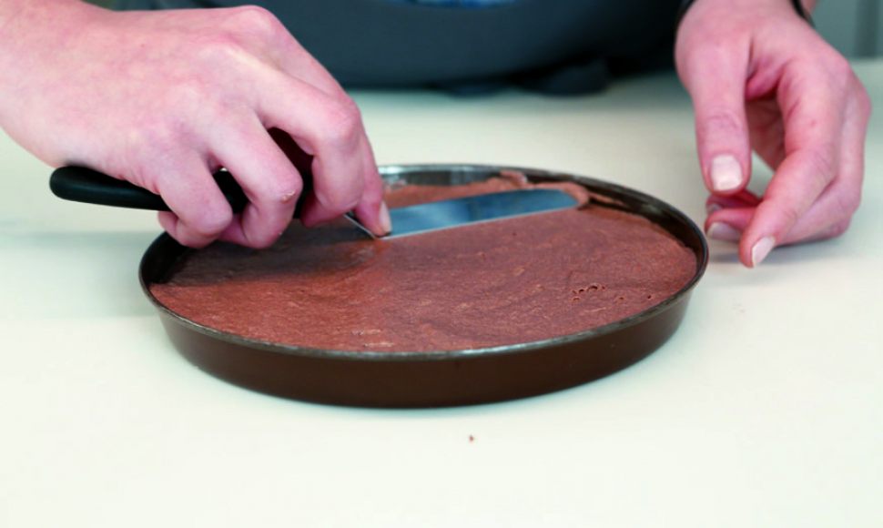 Montez les blancs en neige et serrez-les avec le sucre en trois fois, puis ajoutez les jaunes à vitesse moyenne. Finissez de mélanger à la maryse.