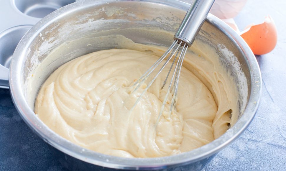Tamisez la farine avec la levure chimique et ajoutez-les, puis incorporez l’huile d’olive.
