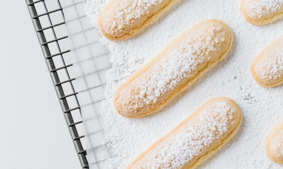 Garnir aussitôt la poche à douille avec une petite douille ronde, dresser des fingers sur la plaque de cuisson, puis saupoudrer deux fois du sucre glace pour former ce côté croustillant du biscuit cuillère.