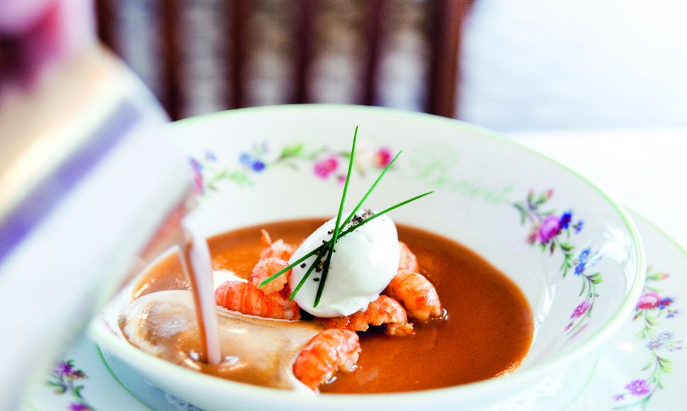À l’aide de ciseaux, coupez les têtes et les pinces des écrevisses en morceaux. Épluchez, lavez et émincez les carottes, le fenouil, les échalotes et l’ail. Lavez les herbes et coupez les tomates en morceaux. Faites chauffer une cocotte avec l’huile d’olive, puis saisissez les carcasses à feu vif. Une fois les carcasses d’écrevisses bien rougies, baissez le feu et ajoutez 20 g de beurre. Ajoutez les légumes émincés et le concentré de tomate, faites-les compoter. Déglacez la cocotte avec le vin blanc, faites réduire à sec, ajoutez la crème liquide et arrosez de fond blanc à hauteur. Ajoutez le thym, le bois de fenouil, l’estragon et les tomates. Laissez cuire 25 min à frémissement en écumant régulièrement. Retirez du feu, et réservez un quart du liquide qui sera utilisé pour détendre la bisque. À l’aide d’un mixeur plongeant, mixez la bisque, puis passez-la au chinois en la foulant au maximum.
