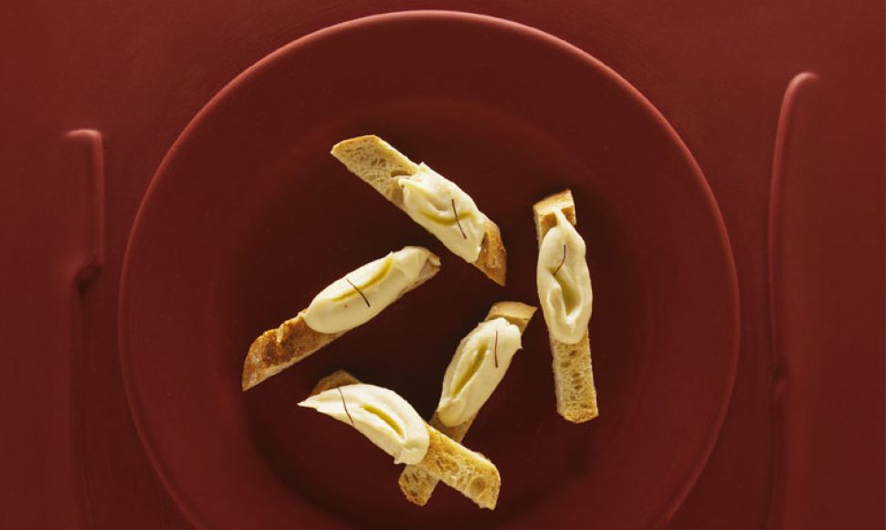 Il existe différentes recettes de Bissara, souvent très fortes et assez lourdes, servies parfois en entrée, d’autres fois allongées en soupe. Cette préparation est en effet très populaire tant en Tunisie qu’au Maroc. Nous avons choisi de l’interpréter en condiment léger, à servir à l’apéritif, en amuse-bouche.