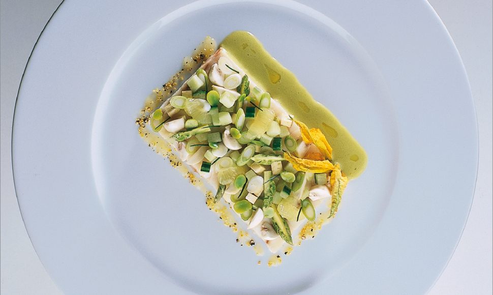 Ecailler, vider le bar et sectionner la tête ainsi que la queue. Lever les filets de l’arête centrale. Retirer les arêtes ventrales, puis lever la peau. Parer afin de laisser les filets blancs.