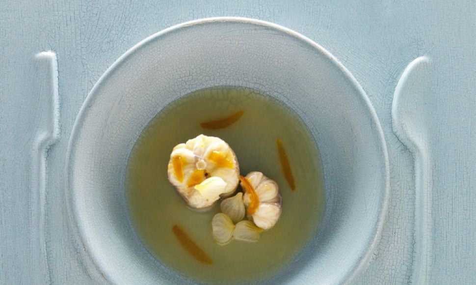 Le nom de ce « caldillo del perro » viendrait de celui du cuisinier (El Perro, le chien) d’un bateau de Puerto de Santa María qui faisait une soupe avec des têtes des poissons, de l’eau et de l’huile. L’originalité de cette recette réside dans l’ajout de jus d’orange dans le bouillon de cuisson du poisson, au moment de servir. Nous avons perfectionné cette association insolite, choisissant de l’émissole, mais cette recette peut se faire avec tout autre poisson.
