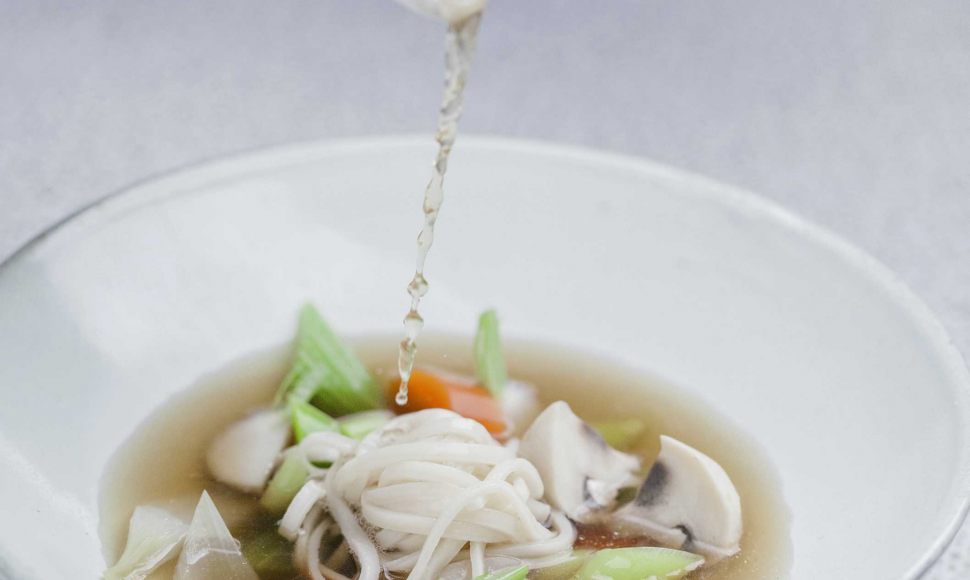 Ce bouillon de volaille est un savant mélange de saveurs d'Asie et de produits du terroir français.