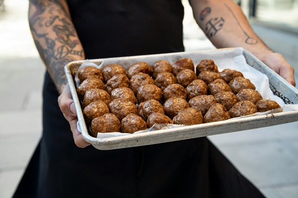 Mélanger à la main jusqu'à obtention d'une farce homogène puis former des boulettes en les roulant entre les mains humides.