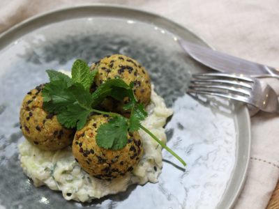 Verser les lentilles dans une casserole d’eau froide puis porter à ébullition. Laisser cuire 10 min puis égoutter. Verser les lentilles dans un robot mixeur. Ajouter la coriandre ciselée, l’oignon émincé, les gousses d’ail dégermés et le cumin. Saler, poivrer puis réduire en purée. Débarrasser dans un saladier puis ajouter la farine. Mélanger et former des boulettes et les rouler dans le sésame.