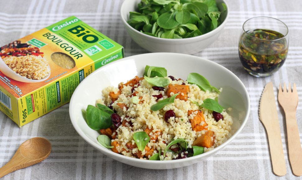 Verser la vinaigrette sur le boulgour. Ajouter les cranberries et mélanger.