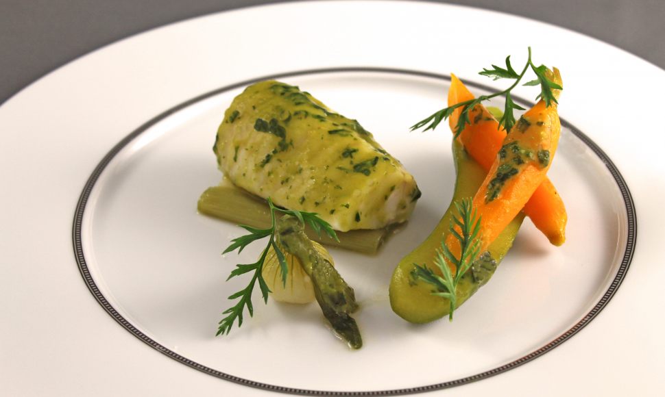 La lotte repose ici sur un lit de légumes cuits dans un bouillon de poisson très goûteux. Avec une sauce pistou et aïoli, ce plat est aussi sain que délicieux.