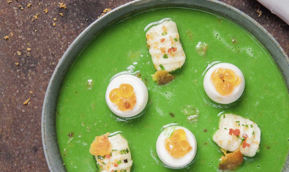 Boutargue gnocchis, œufs de caille et de saumon, crème de roquette et manouri