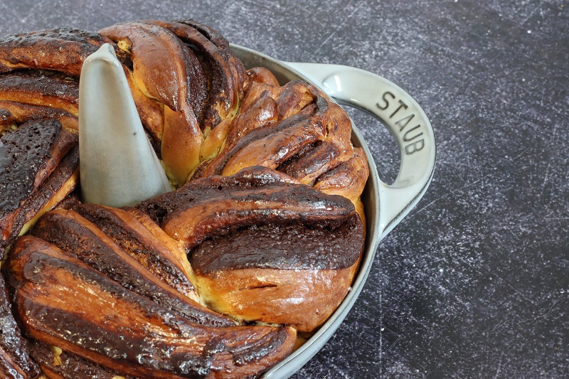 Le roaster Staub est polyvalent. Grâce à sa fonte émaillée, il permet à vos volailles d'avoir une cuisson uniforme, mais également de cuire des viennoiseries !