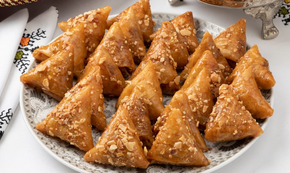 On déguste les « Briouats au miel et aux amandes » dans tout le Maroc. Briouats (ou briouates) signifie « petites enveloppes ». À l’origine, la pâte dans laquelle est enfermée celle d’amande était de la pastilla (ou ouarka). Maintenant, on se sert de feuilles de brick. Un recette gourmande aussi bien pour le goûter que pour le dessert en période de Ramadan par exemple.
