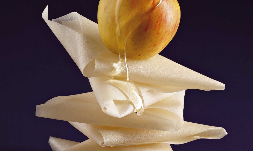 Des feuilles de brick en forme de triangle fourrées de poulet assaisonné au safran et citron confit. Un délice !