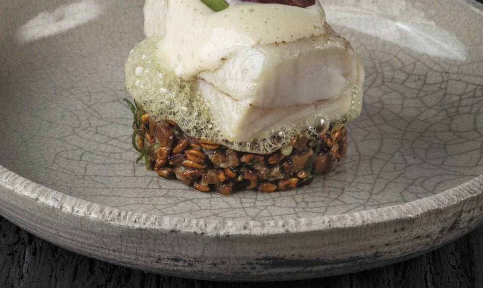 Brochet barbecue, beurre de fruitière brûlé, risotto d’épeautre à l’oseille