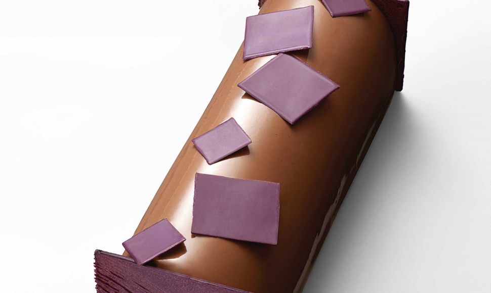 Versez la moitié de la meringue dans la première préparation aux œufs. Versez ensuite la deuxième moitié de meringue, puis incorporez les poudres. Débarrassez l’appareil obtenu dans une plaque de 30 x 40 cm et étalez-le à l’aide d’une spatule en inox. Enfournez pour 12 min. Détaillez le biscuit en un rectangle de 30 cm x 24 cm. Gardez le morceau restant pour le fond de bûche.