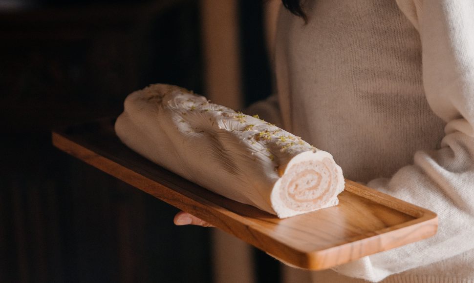 Astuce : enrouler à chaud votre biscuit dans un torchon propre pour mieux le rouler au montage