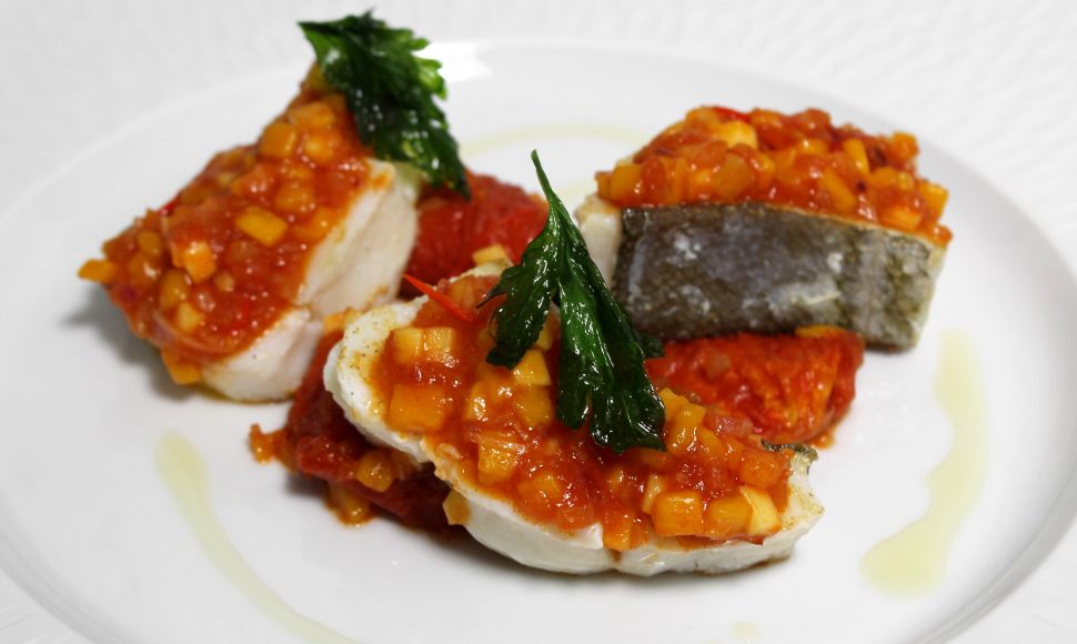 Cabillaud en fines tranches, jus - garniture de rougail