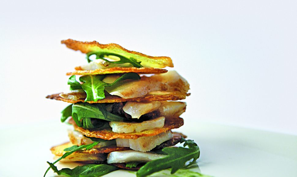 Impressionnez vos convives avec le cabillaud poché en millefeuille d’Alain Ducasse. Réalisez des chips de pommes de terre à la mandoline, pochez le poisson dans un mélange de lait et de badiane, préparez un pistou à base de roquette puis faites dorer le cabillaud quelques minutes à la poêle. Vos éléments sont prêts à être montés en millefeuille, en alternant roquette, cabillaud et chips.