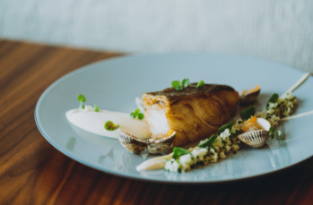 Cabillaud rôti, mousseline de chou-fleur, coulis de cresson