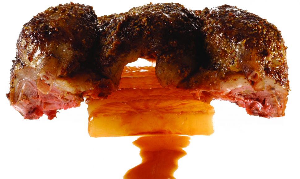 Canette de barbarie en crapaudine grillée à la moutarde, jus acidulé et navets fondants
