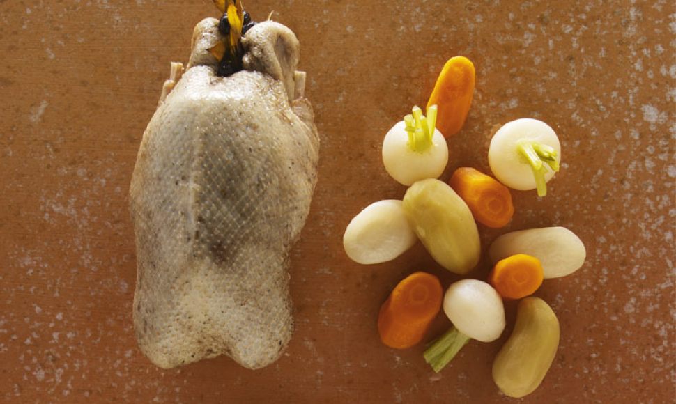 Cette recette est peut-être liée à la pratique de la transhumance car elle a tout d’une préparation de nourriture de voyage. La myrte, également utilisée dans la cuisine corse, est une plante oubliée et qui mérite d’être redécouverte. Nous en avons farci la canette et nous avons ajouté des légumes pour garnir cette canette.