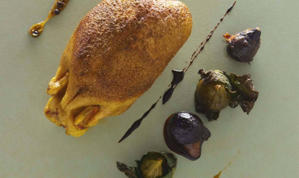 Canette poudrée d’épices aux figues réduction de porto, vrai jus