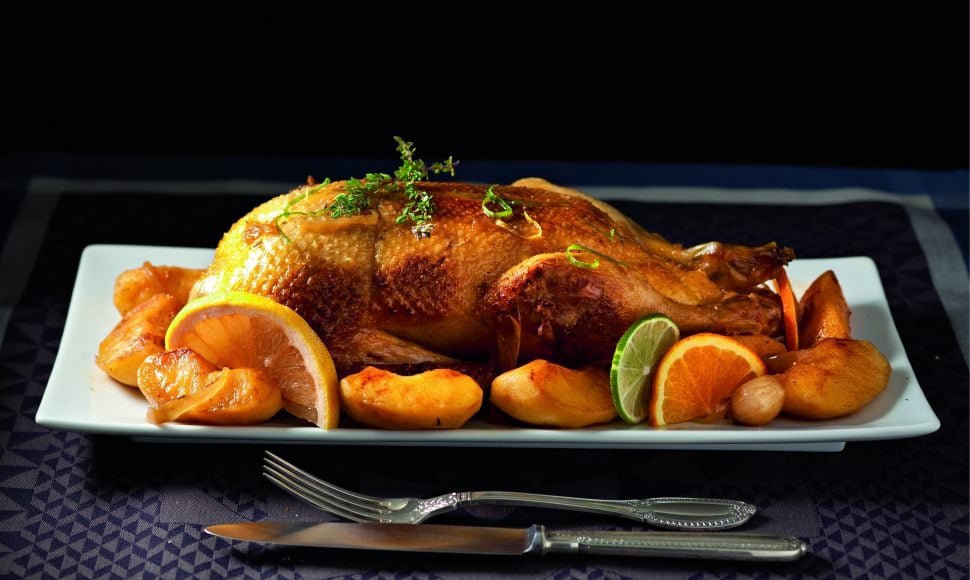 Remettez la cocotte sur feu vif et faites dorer la garniture encore 2 min, ajoutez le miel, mélangez puis versez le vinaigre en grattant bien les sucs. Versez 12 cl d’eau et laissez mijoter à feu moyen pendant 10 min. Ajoutez le jus de la canette issu son temps de repos. Mettez les zestes des agrumes dans une passoire et plongez celle-ci dans l’eau bouillante pendant 2 min. Égouttez-les et mettez-les dans la sauce.