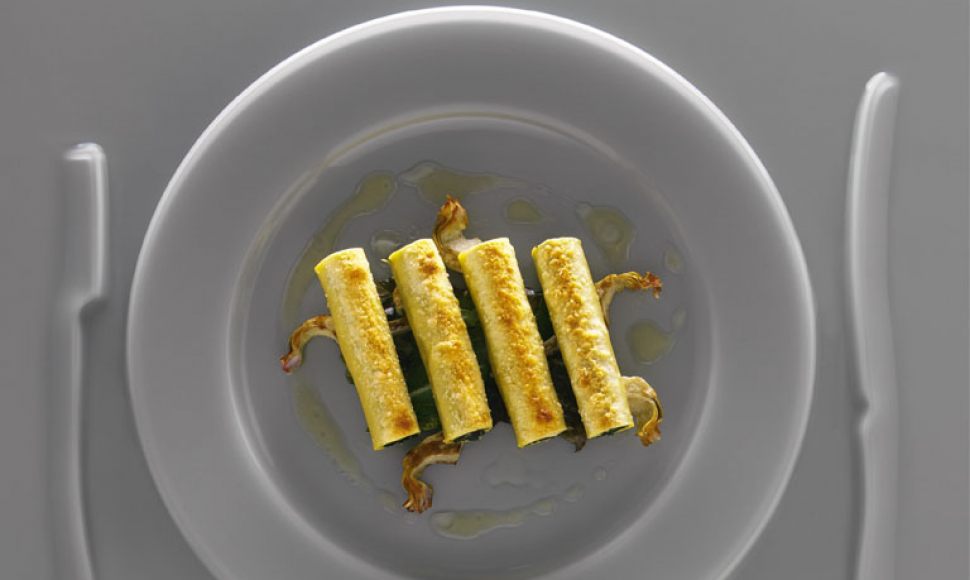 Cannelloni de mesclun et de bourrache, artichauts sautés