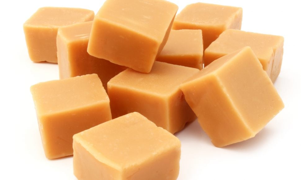 Verser le caramel sur une plaque ou dans un grand moule recouvert de papier sulfurisé. Laisser refroidir. Le découper en petits cubes, à l’aide d’un couteau sans dent.