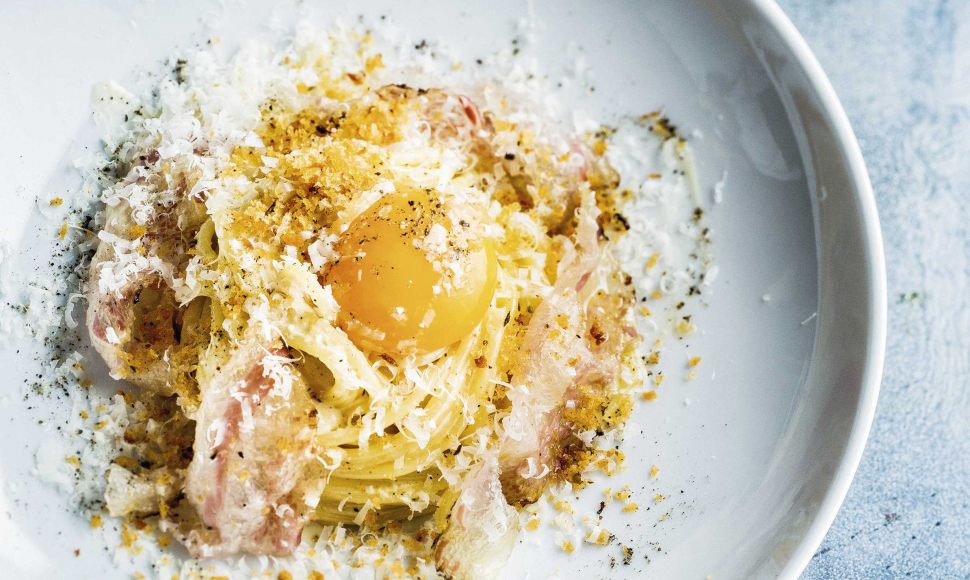 Un plat de spaghettoni facile et rapide à réaliser aux oeufs, guanciale et Grada Padano : c'est la carbonara !