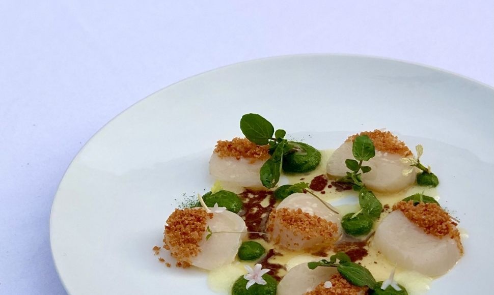 Carpaccio de Saint-Jacques de plongée, cresson de fontaine, beurre noisette de barde