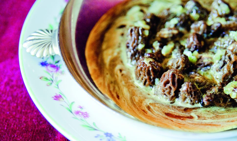 Ajoutez la crème mi-montée pour voiler légèrement la cassolette de morilles. Dressez les morilles, puis saucez.