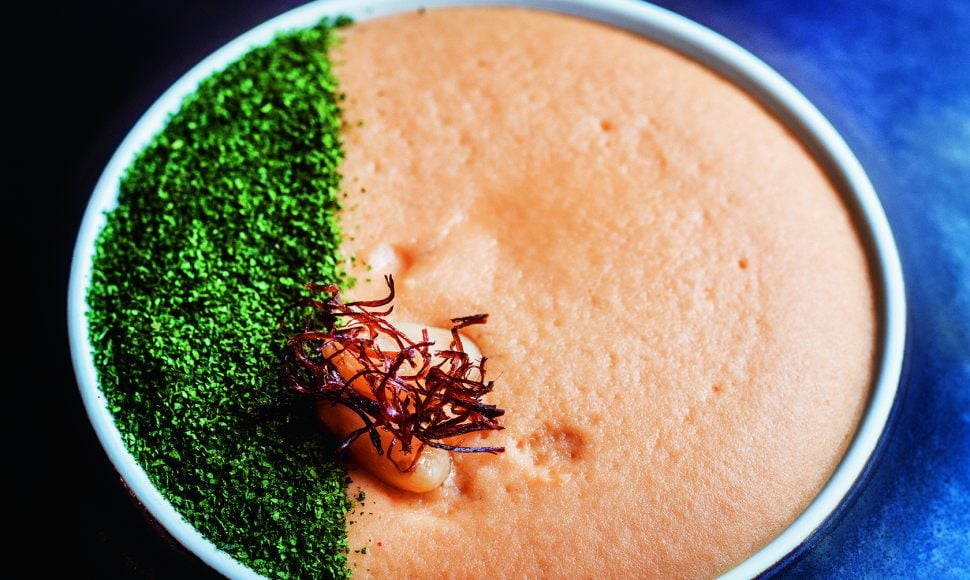 Au bout de 1 h 30 de cuisson, ajoutez le sel fin. Lorsque les haricots sont fondants, retirez du feu. Prélevez 16 d'entre eux, puis mettez-les de côté ainsi que 4 c. à s. de jus de cuisson pour le dressage final. Ajoutez la crème liquide au cassoulet, puis portez le tout à ébullition. Mixez à l'aide d'un mixeur plongeant et passez au chinois. Versez la préparation dans un siphon avec 2 cartouches de gaz. Si vous n'avez pas de siphon, fouettez le mélange 5 minutes au batteur électrique pour former une mousse.