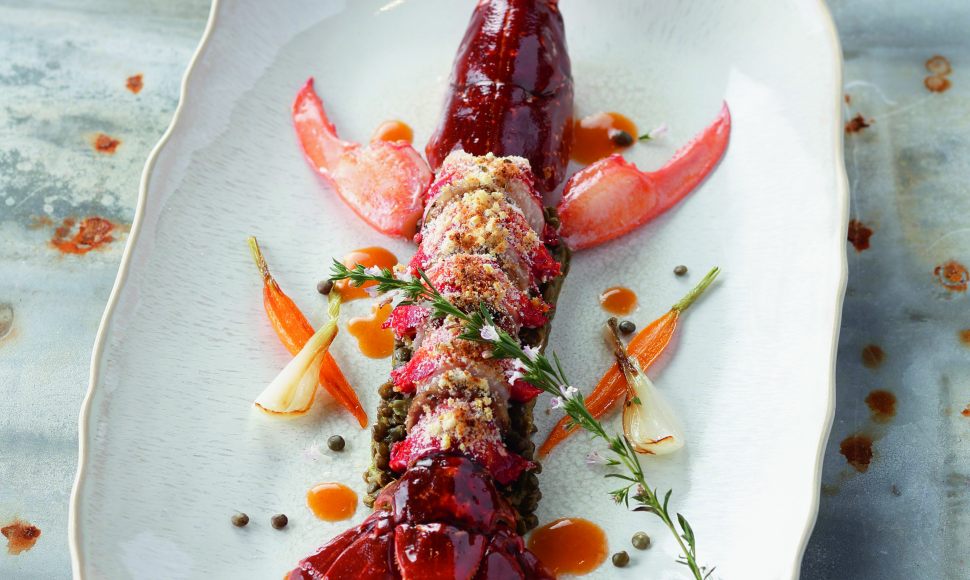 « J’ai imaginé cette recette à partir de la recette traditionnelle du cassoulet. Je l’ai adaptée en remplaçant la viande par un crustacé et les cocos traditionnels par les lentilles vertes du Puy de chez nous, tout en respectant le principe de la recette : la croûte sur le cassoulet, la graisse de canard, la saucisse et le mijotage. Le résultat m’a plu ! »