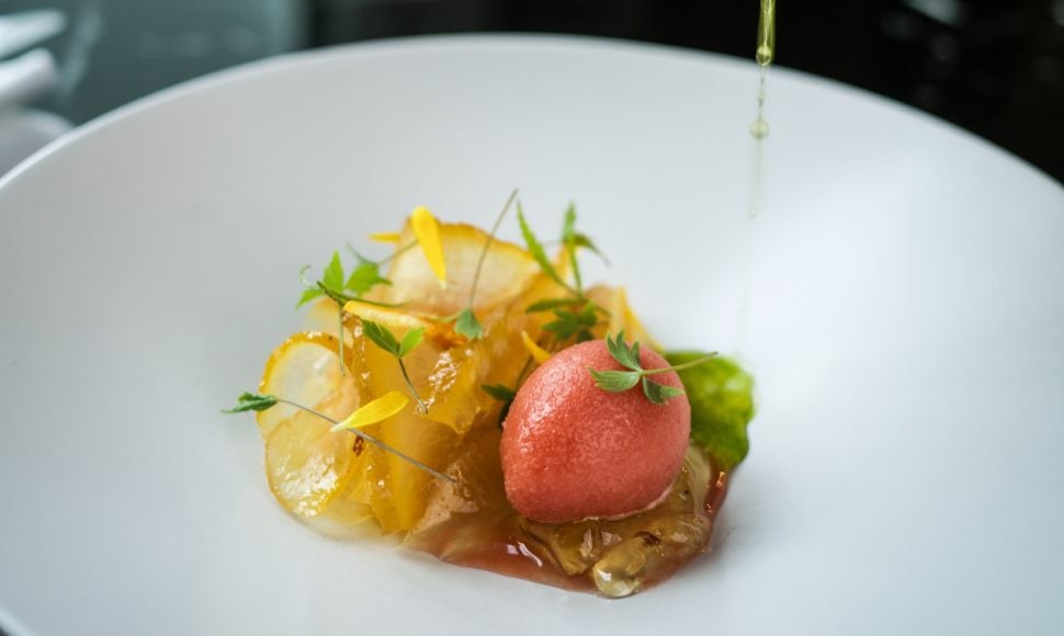 Un dessert à retrouver à la table montreuilloise du chef Camille Saint M'leux, où le chef et son équipe ont installé une serre dans le jardin attenant au restaurant, pour y cultiver leurs propres agrumes.