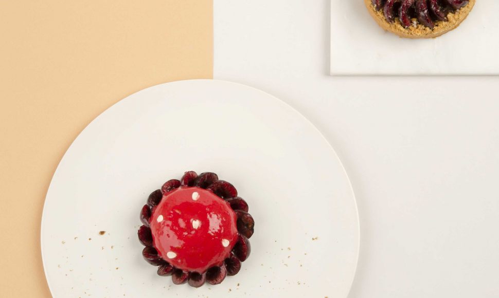 Un granité et une mousse de cerises, dressés sur une marmelade de cerises et réglisse, accompagnés d'une tarte inspiré du célèbre gâteau basque. On peut déguster ?