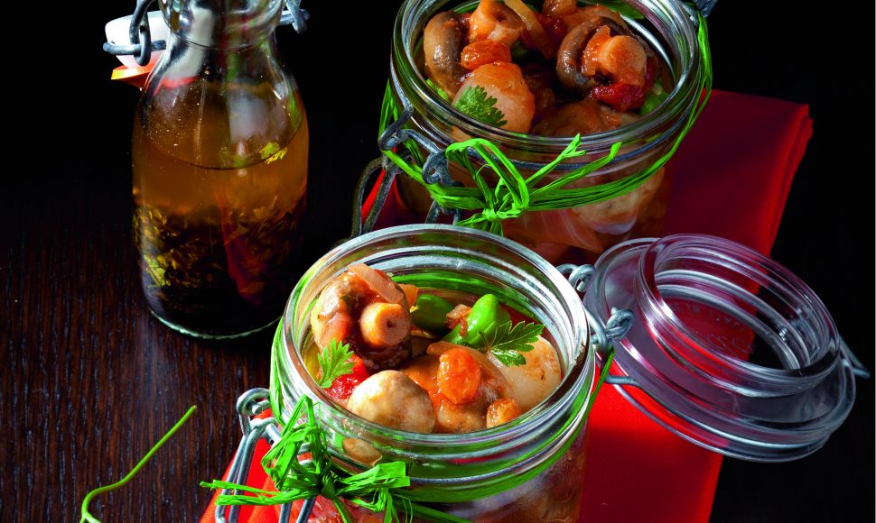 À l’aide d’une écumoire, retirez les champignons et mettez de côté. Ajoutez la pulpe de tomates, les fèves, les raisins secs, les raisins blonds et les oignons botte dans la sauteuse. Laissez cuire 6 min en remuant de temps en temps. Remettez les champignons, retirez du feu puis laissez refroidir.