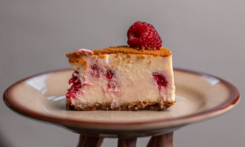 Dans cette recette de cheesecake, typiquement américain, le citron laisse place aux fruits rouges aux framboises, avec un appareil au fromage frais et aromatisé à la vanille. La petite touche française : le biscuit réalisé à partir de sablés bretons.