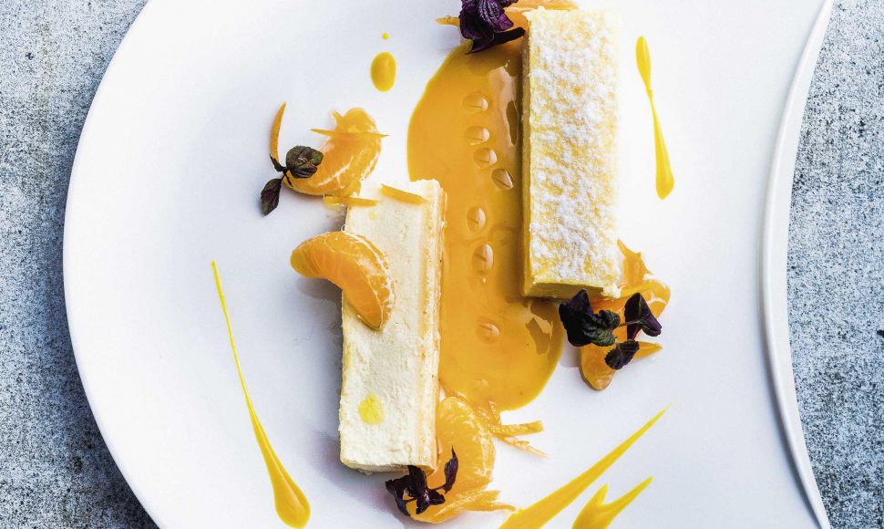 Mixez le jus de yuzu restant avec le jus de mangue et l’huile d’olive. Réservez au frais. Épluchez les mandarines et séparez les quartiers. Une fois le cheesecake bien froid, coupez-le en parts et saupoudrez-le de sucre glace.