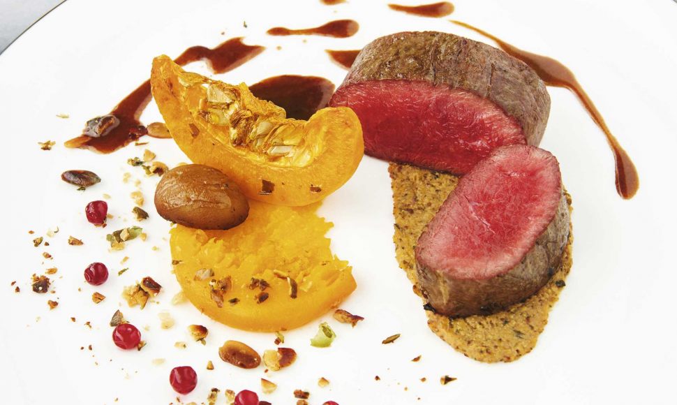 Un plat qui met à l'honneur les saveurs brutes et faisandées du chevreuil, servi accompagné de courges fondantes et de châtaignes, et d'une sauce grand veneur.