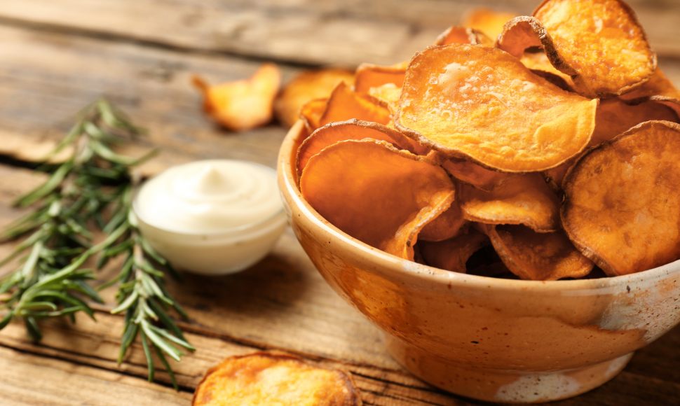 Épluchez la pomme de terre, puis détaillez-la en fines lamelles à l’aide d’une mandoline. Faites chauffer l’huile de friture. Lorsqu’elle atteint 140 °C, plongez-y les lamelles de pomme de terre. Laissez-les frire jusqu’à ce qu’elles soient joliment colorées. Égouttez-les à l’aide d’une écumoire, puis déposez-les sur du papier absorbant. Salez les chips, puis servez-les tout de suite.