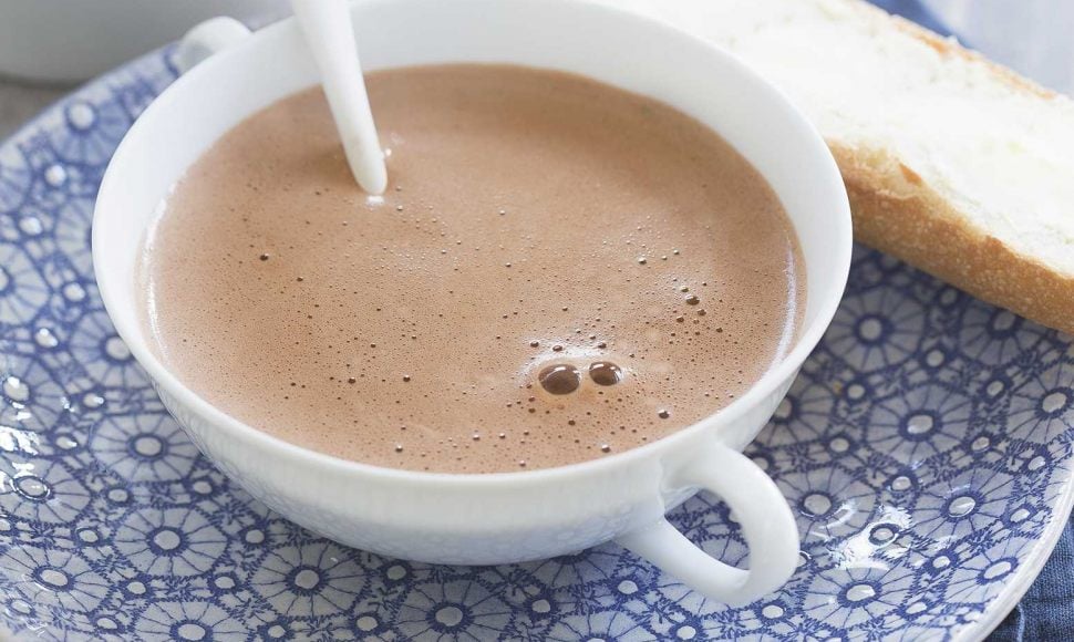 Plongez le sachet de thé dans le chocolat chaud et laissez infuser 10 min. Faites à nouveau cuire au four à micro-ondes pendant 2 min. Retirez le sachet de thé et mixez à l’aide d’un mixeur plongeant ou d’un fouet pour bien lier la préparation.