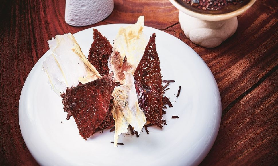 « Le chocolat a toujours été lié à un souvenir d’enfance pour moi. L’associer avec la réglisse que nous mâchions sur les bancs de l’école lorsque nous étions enfants ainsi qu’avec une crème à peine prise – comme une crème brûlée – offre un plaisir divinement régressif. Le beignet est là pour la gourmandise et pour se remémorer l’insouciance d’une enfance heureuse, tout simplement… C’est ça, le chocolat ! »
