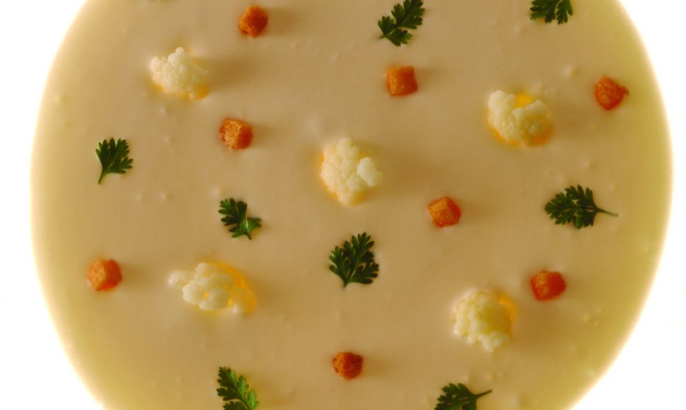 Chou-fleur de Bretagne en délicat velouté, croûtons de pain de mie