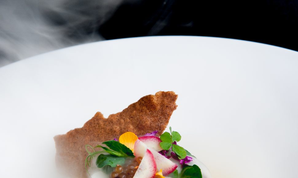 Chou-fleur fumé & confit, safran et tartare d'algues