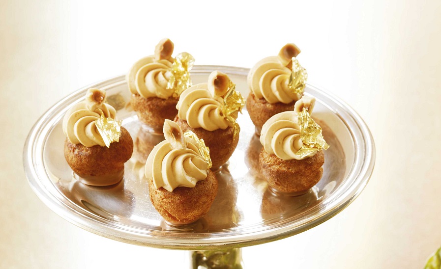 Découpez des ronds de craquelin à l’aide d’un emporte-pièce uni de 2 cm, puis déposez-les sur les choux. Faites cuire pendant 20 min, puis laissez refroidir sur une grille.
