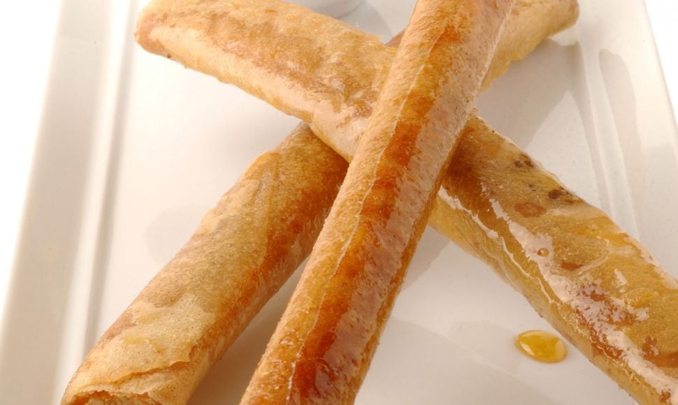 Badigeonner chaque feuille de brick de beurre fondu. Y déposer un boudin de pâte d’amandes, enrouler la feuille aux deux tiers en la soudant avec un peu de blanc d’œuf. Laisser reposer une nuit au congélateur.