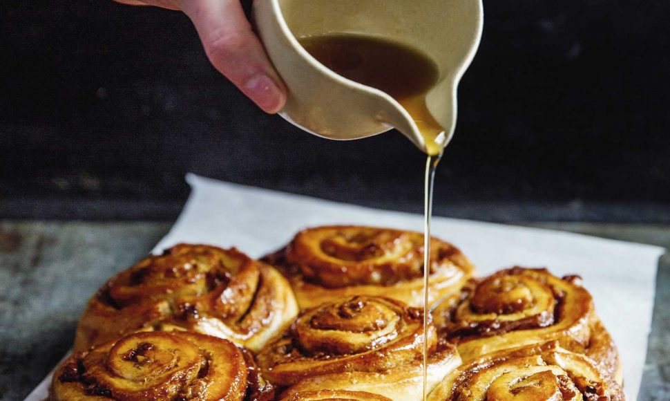Posez les tronçons en rosace dans un moule rond chemisé de papier cuisson et enfournez pendant 12 à 15 min. Les cinnamon rolls doivent être bien dorés. Sortez le moule du four puis nappez les rolls avec le sirop. Laissez refroidir 30 min avant de démouler. Dégustez tiède.